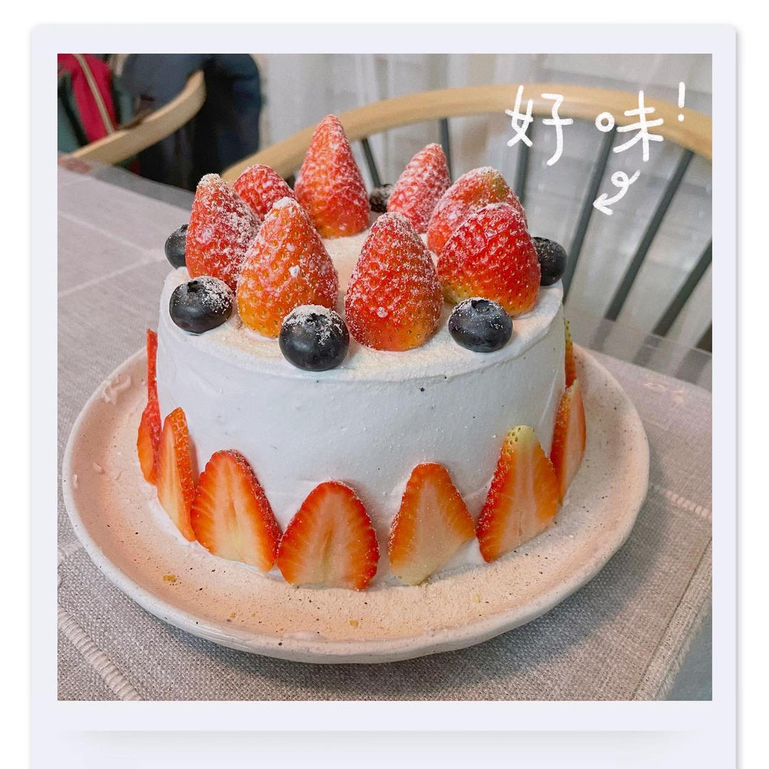 用楼主的方子做的戚风胚 最后做成了草莓奶油蛋糕 看着就食欲很好啊!
