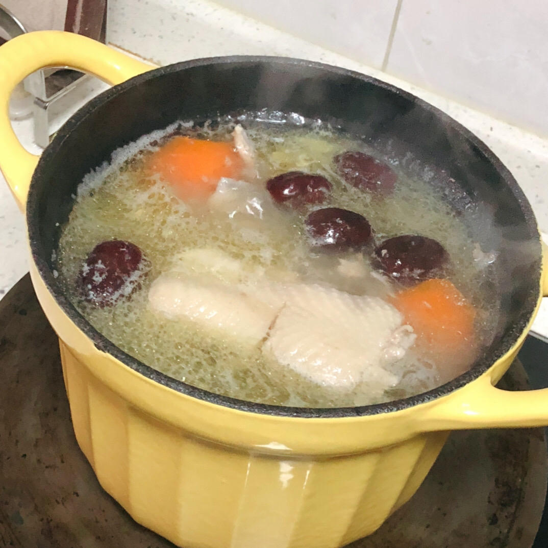食材:淮山 红萝卜 红枣 鸡骨架 清水
