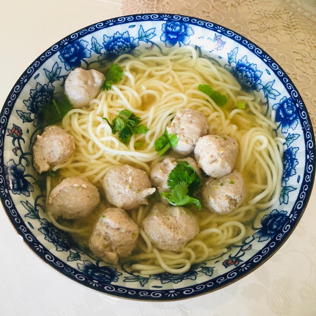 #手打肉丸子面条#