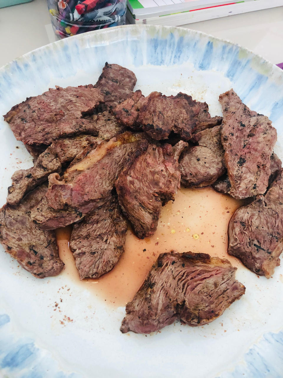 铁板牛肉和川味腊肠,最近天气不好,成天刮妖风的国家关键时刻没风了,实在等不及了,蒸了一根,配个自制荔枝六金酒。#晚餐•2...