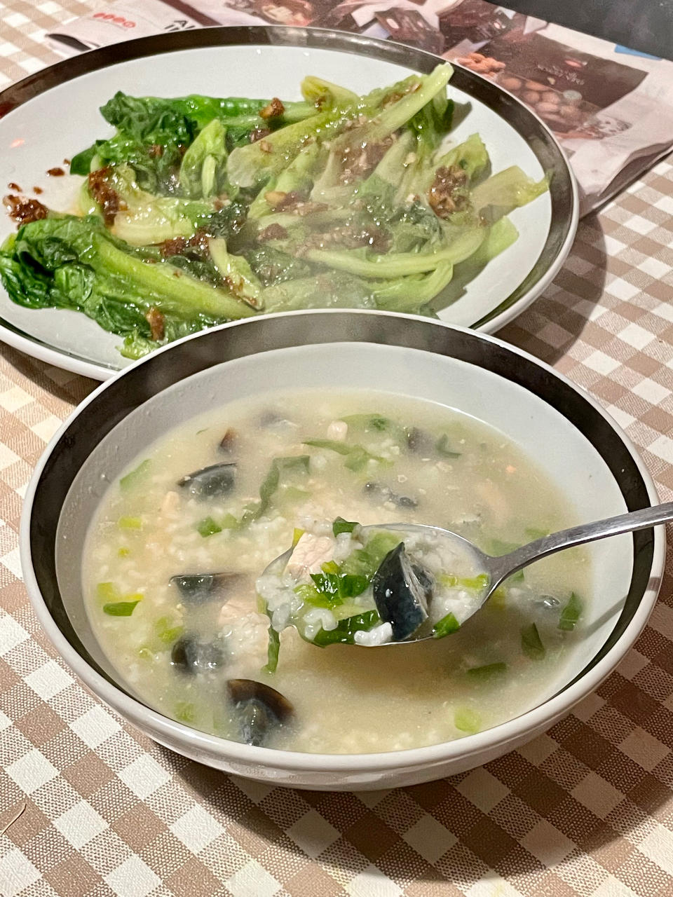三杯鸡,豉椒炒带子,玉米胡萝卜脊骨汤