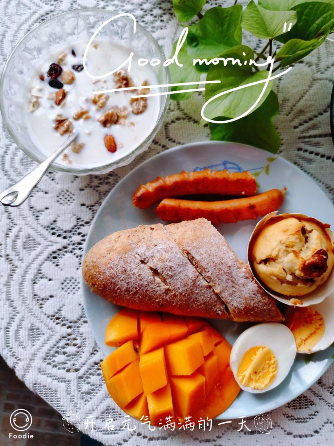 昨晚烤了全麦欧包。今早就吃它。