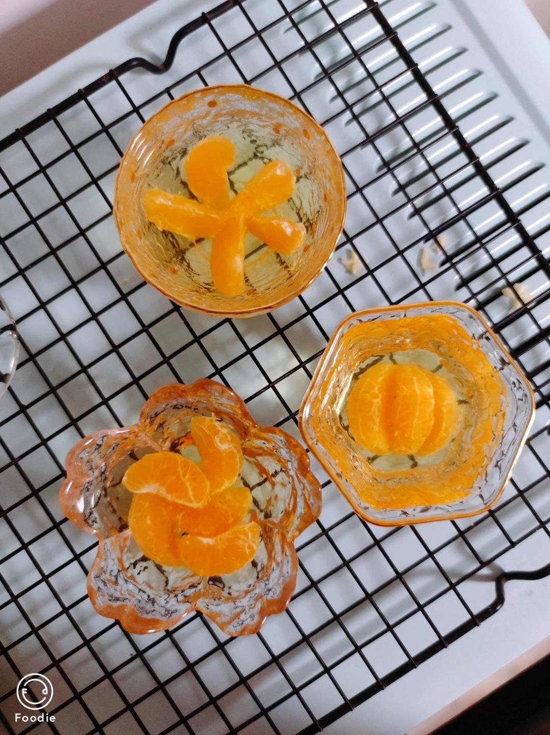 白凉粉和砂糖橘做的橘子果冻。液体部分加了一点果珍