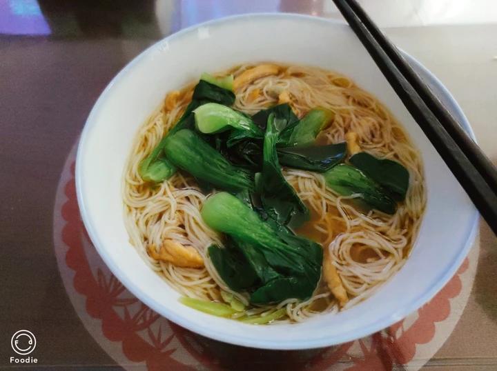 爸爸给我做的健身餐——鸡胸肉丝青菜米线。