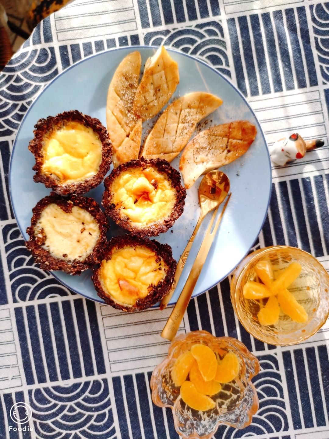 只用了一个鸡蛋,一半蛋液和半个香蕉用来做挞皮,另一半蛋液兑牛奶做蛋挞液。用了海藻糖,完全不甜。#早餐•2022年1月16...