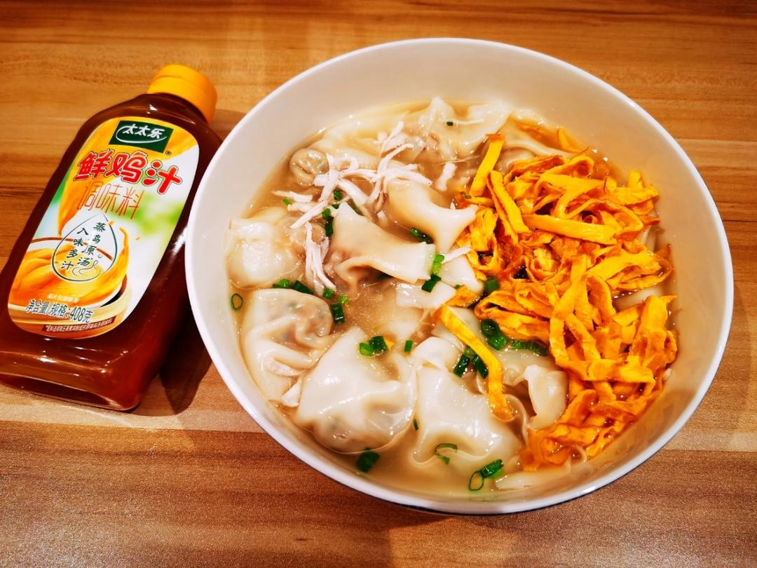 用太太乐鲜鸡汁调了底汤,加入鸡丝,蛋丝,鲜美的鸡汤馄饨靓丽登场啦!😻😻下雪天❄️来一碗,...