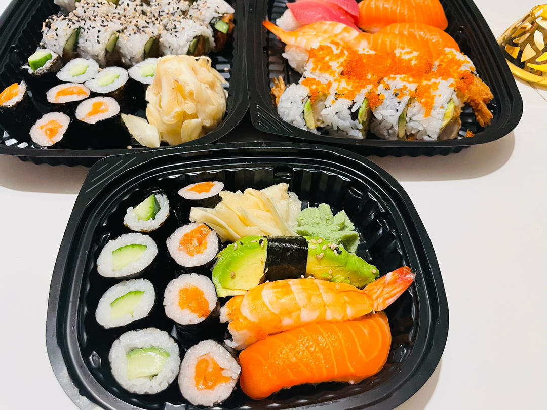 昨天晚上在客人走后,我们按照儿子的愿望,简单地点了寿司🍣外卖当晚餐。