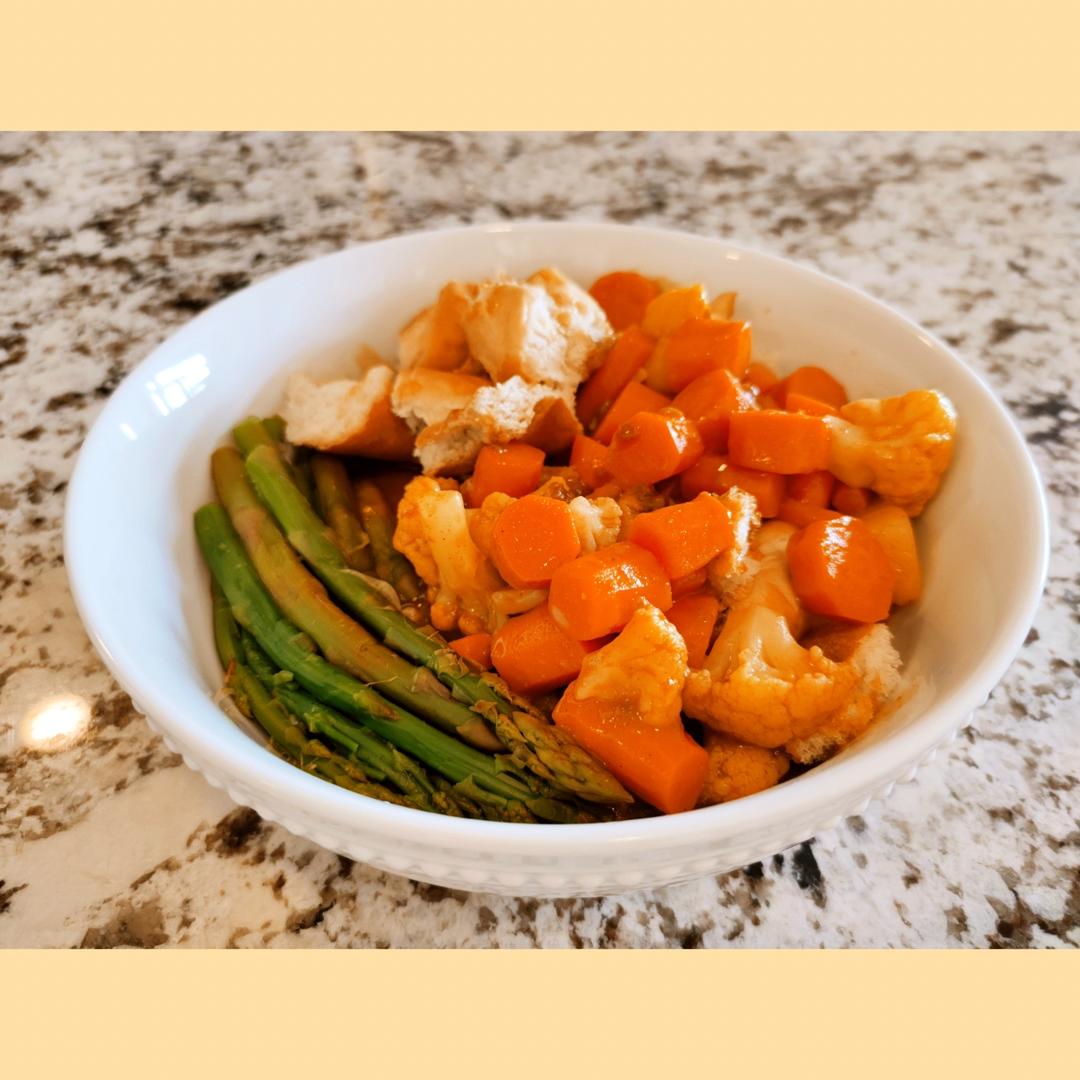 咖喱面包+菜花胡萝卜芦笋