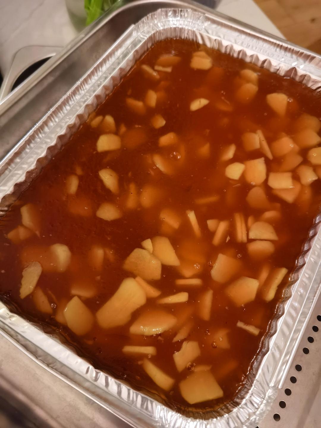 又做了一次,加了马蹄,水少了50克,糖量是80%,成品色泽红亮,口味清甜,非常赞!