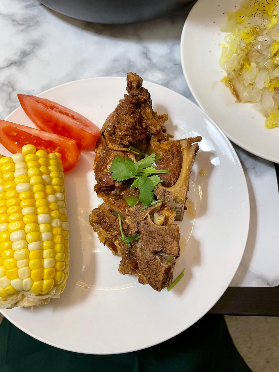 🌽🍅,大厨焖的牛骨头好吃🤩,午饭是土豆鸡块。