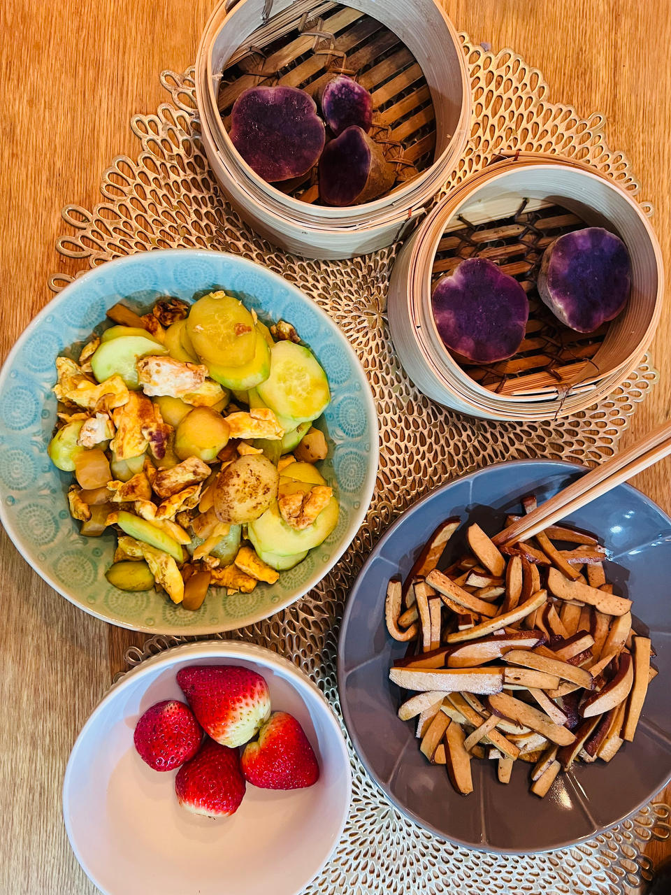 和室友一起做了炒香干和黄瓜炒蛋