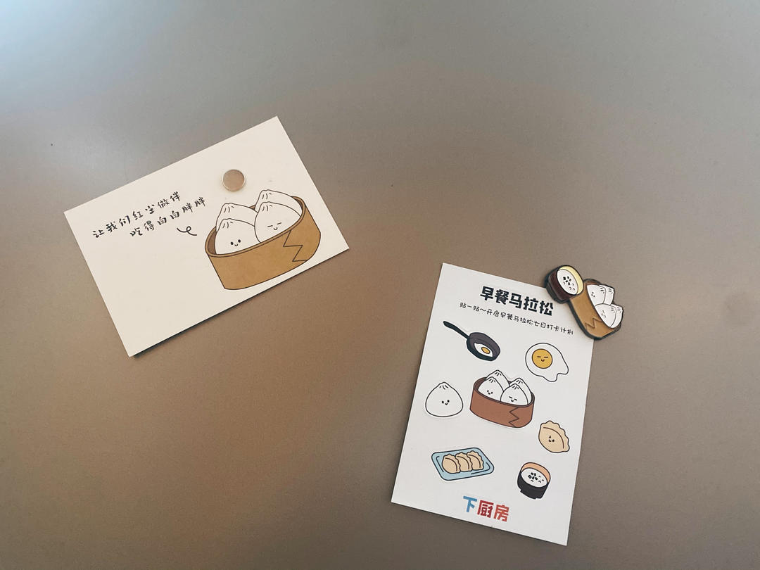 元宵节收到了下厨房寄来的早餐纪念品冰箱贴,喜欢!!虽然自己记录做的不是很精致精美,早餐也不是很好和健康充裕,但每天必吃还...