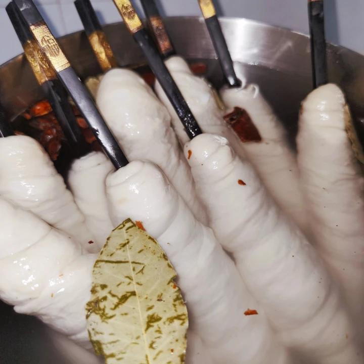 边倒边用筷子顺...