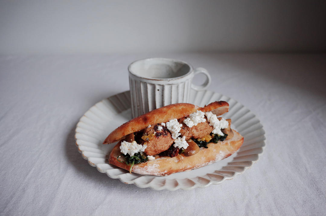 肉圆+ cottage cheese + 炒菠菜 ciabatta 三明治