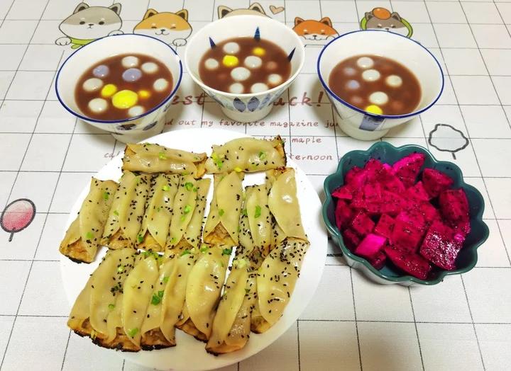 糖加多了,下次试试香蕉馅。包完的时候加一点葱肉,煎了还不错