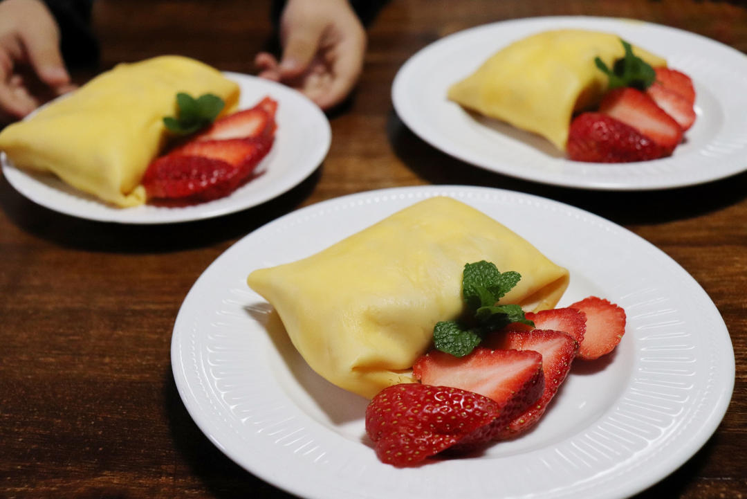 一直想不起来这个甜品的名字,于是用了这个毛巾卷的方子~做的时候终于想起来,是班戟!!