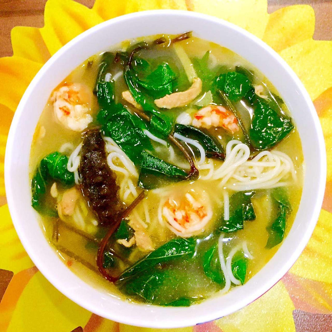 海鲜鸡蛋面,加一把自己水培的红薯叶,好吃更营养😋小熊压面机,省心省力,口感劲道更健康!
