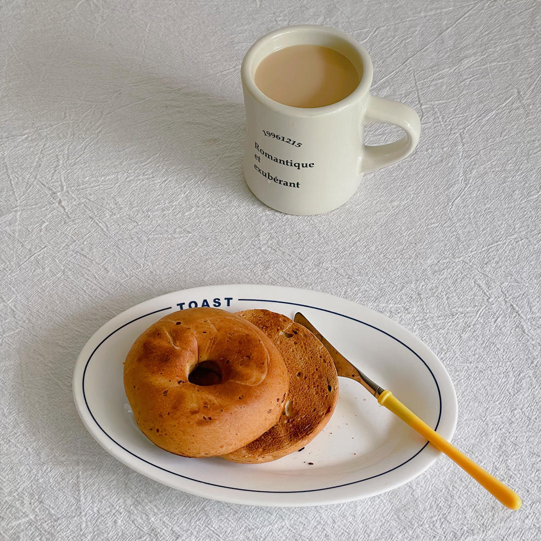 提示:不要拿平底锅热贝果,搞不好会糊!