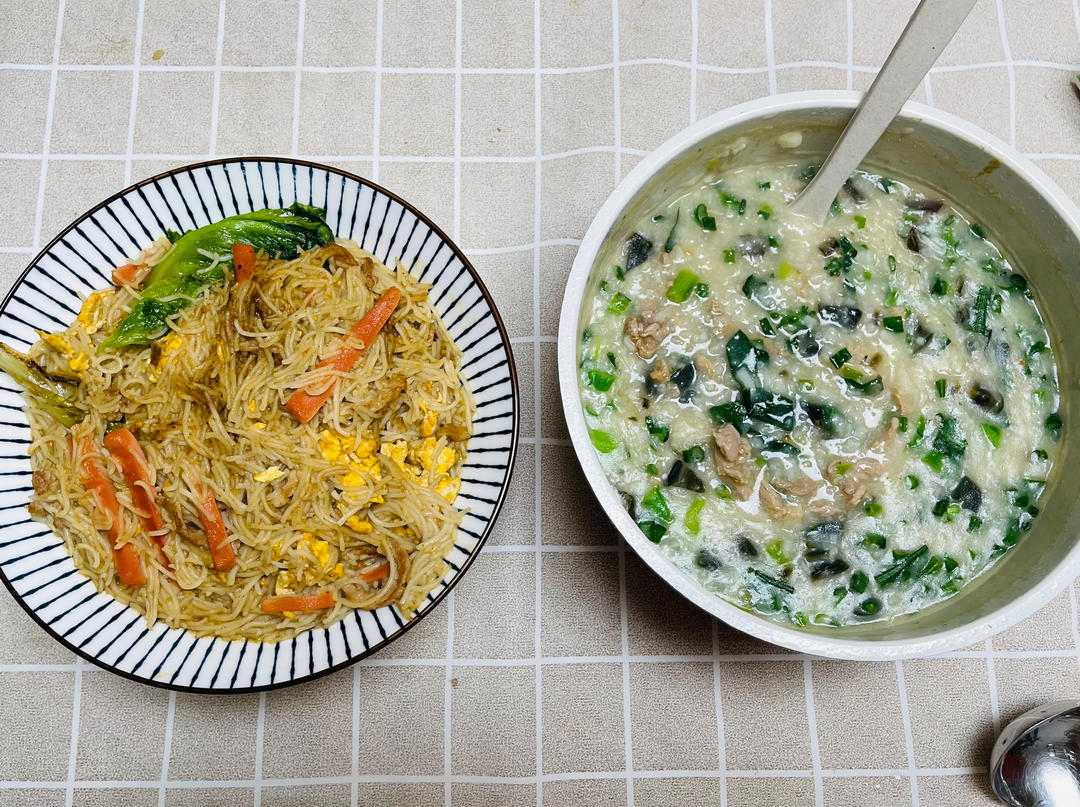 皮蛋瘦肉粥+炒米粉,是家的味道啊~赞赞赞