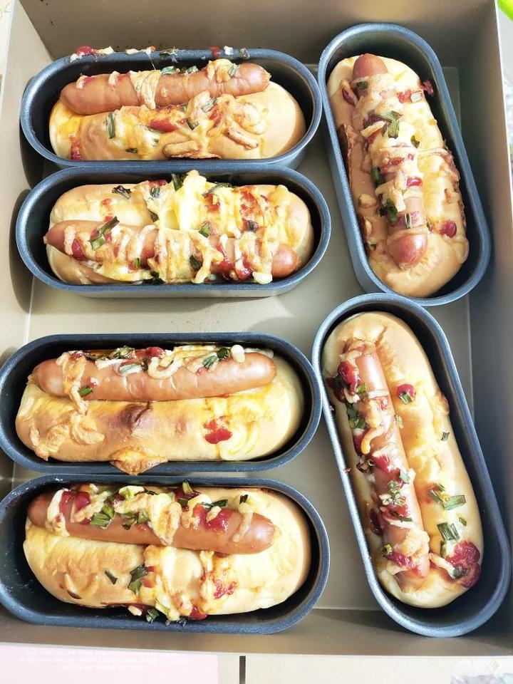 😂晚上做有点仓促,孩子闹着睡觉草率了,参考时间到了我看不太上色延长时间,有点过火了。脆皮肠都快跑出来了,笑死了