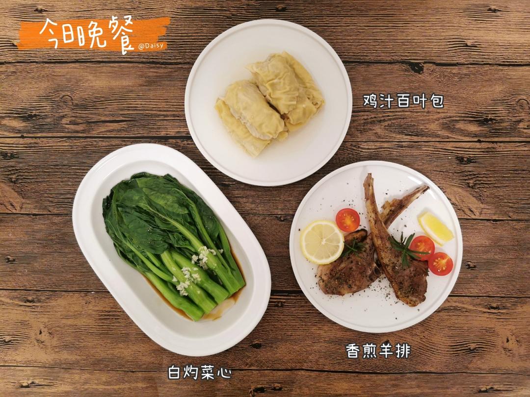 香煎羊排 + 鸡汁百叶包 + 白灼菜心