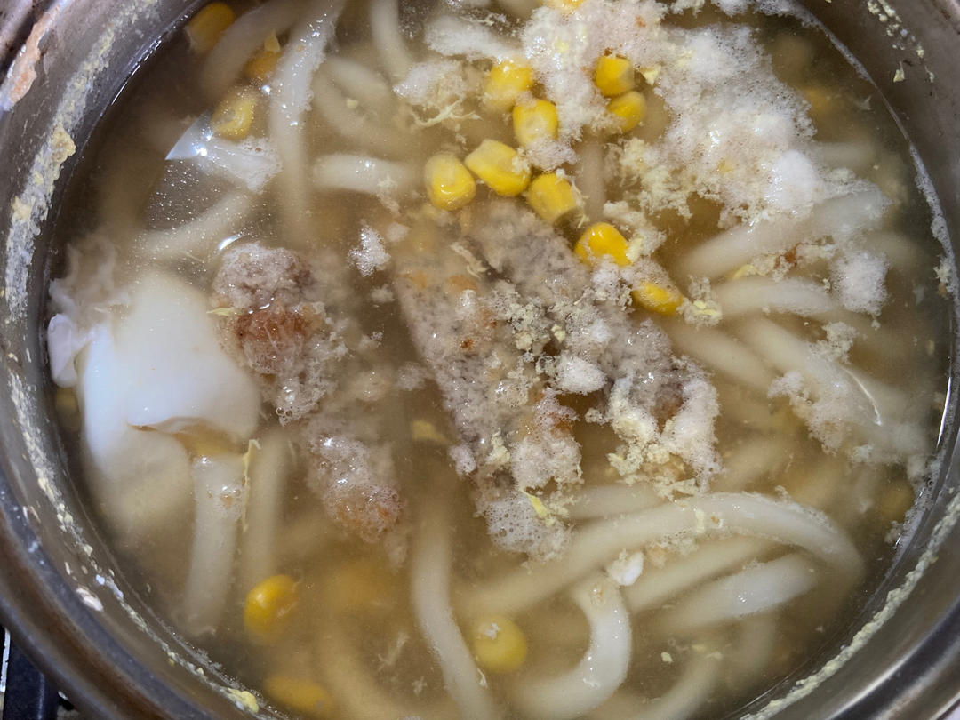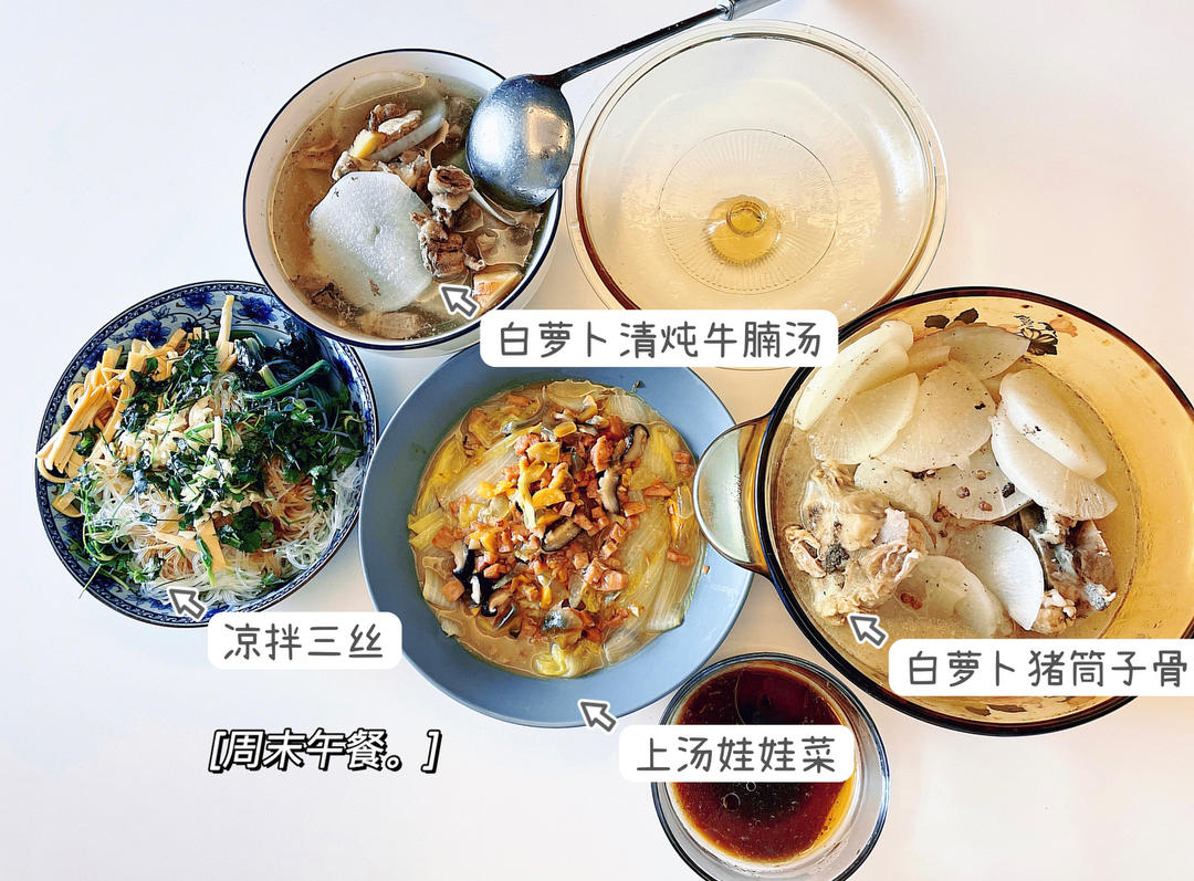 白萝卜、牛奶、猪筒骨、菠菜、粉丝、豆皮、娃娃菜、午餐肉、皮蛋、香菇。