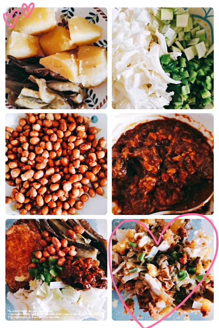 中:plus豪华版东北大饭包🥙(土豆🥔+茄子🍆+白菜+辣椒🌶+葱+自炸花生米🥜+秘制鸡...