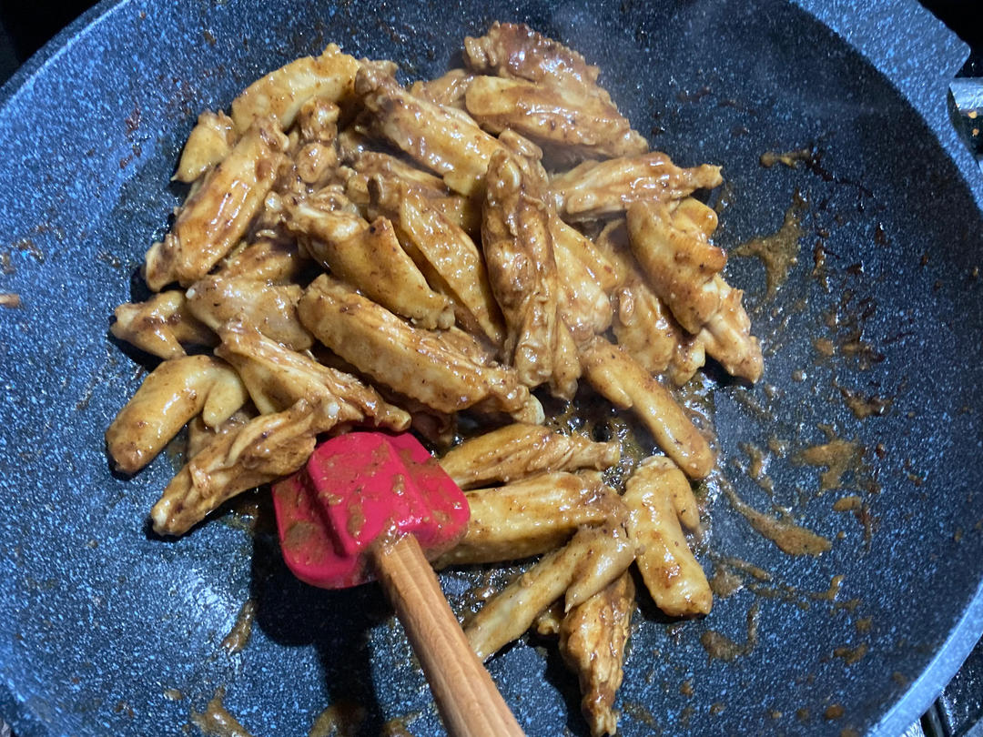 用的李锦记沙茶火锅底料,这个底料做菜真的好用好吃😋跟鸡翅很搭很搭~