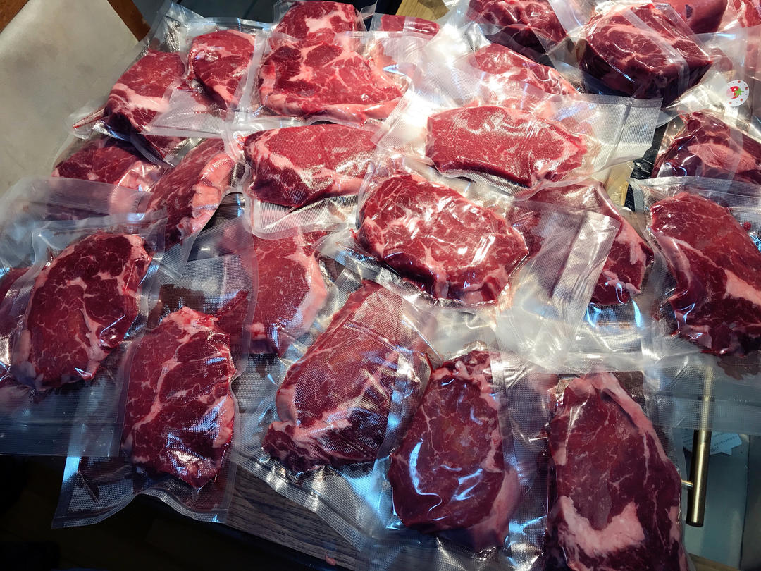 买了整条肋眼肉和嫩肩胛,真空分装,眼肉便瘦,煎牛排七分熟刚刚好,多一分便柴,少一分收不净血水,肩胛肉我打算切成薄片做孩子...