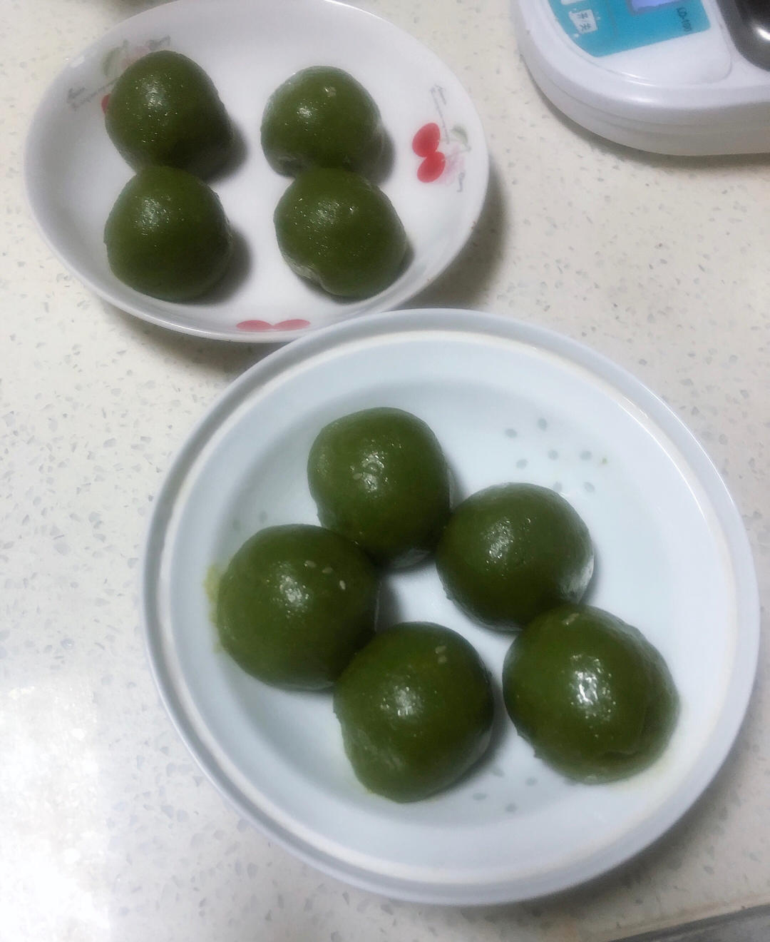 直接把艾草用破壁机搅拌成泥后用的,这样简单些,颜色有点深,味道还是挺好的,尤其是蛋黄肉松的