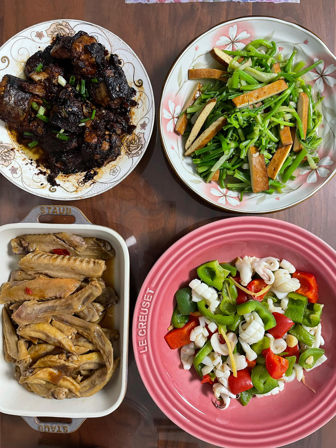 红烧鳗鱼,青椒鱿鱼,水芹豆腐干,卤鸭翅……