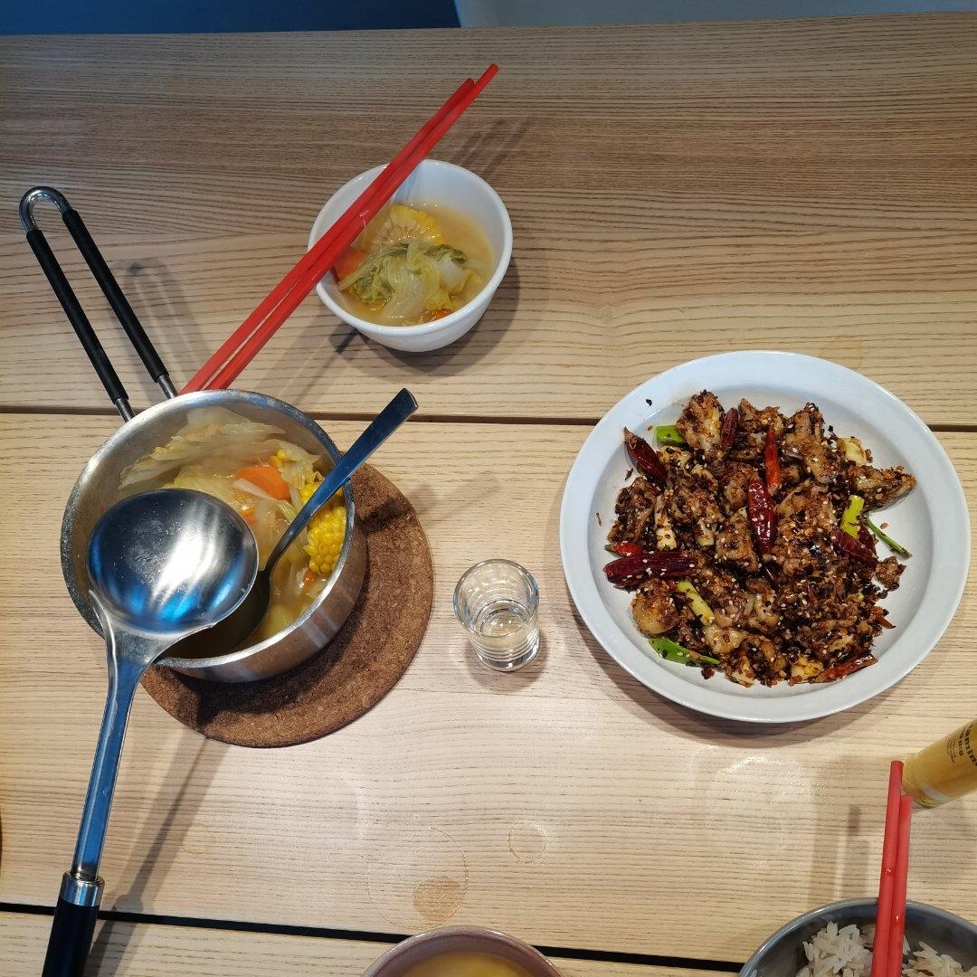 韩式泡菜豆腐汤,用韩式辣酱替换了一半生抽,加了虾仁鱼丸