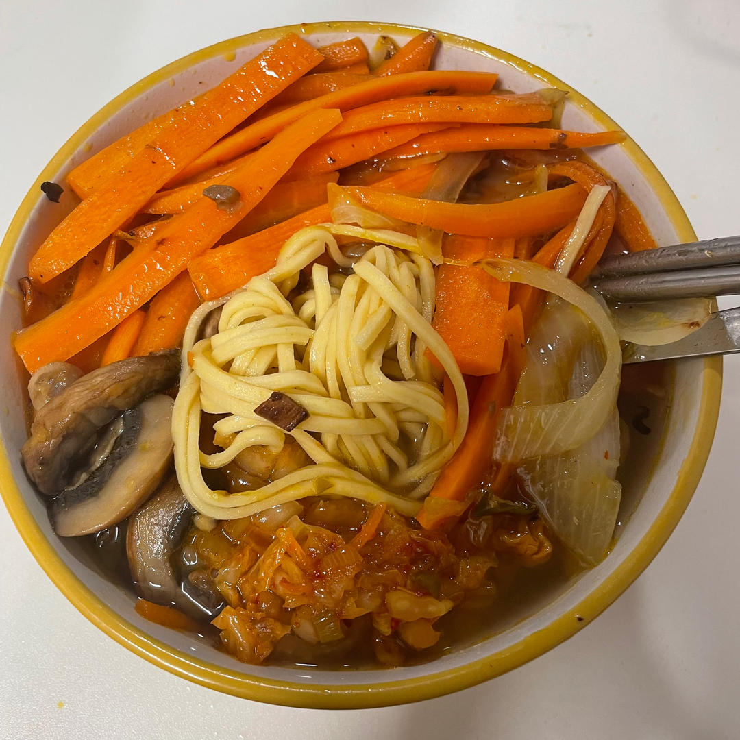 好吃绝了 其实做的可以算是自己改良的温热版冷面 用番茄煮的面 然后把煮面的热汤也倒一些进...