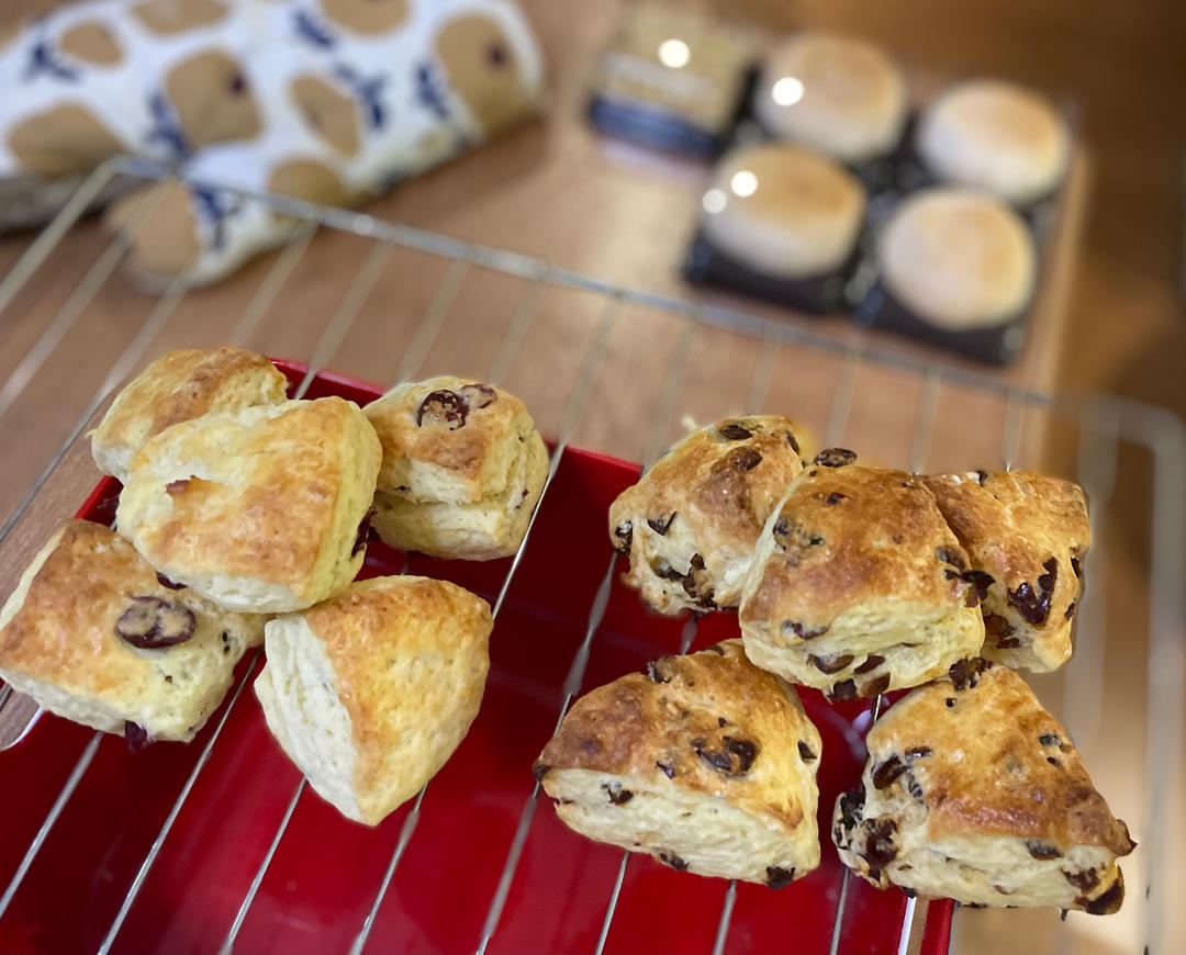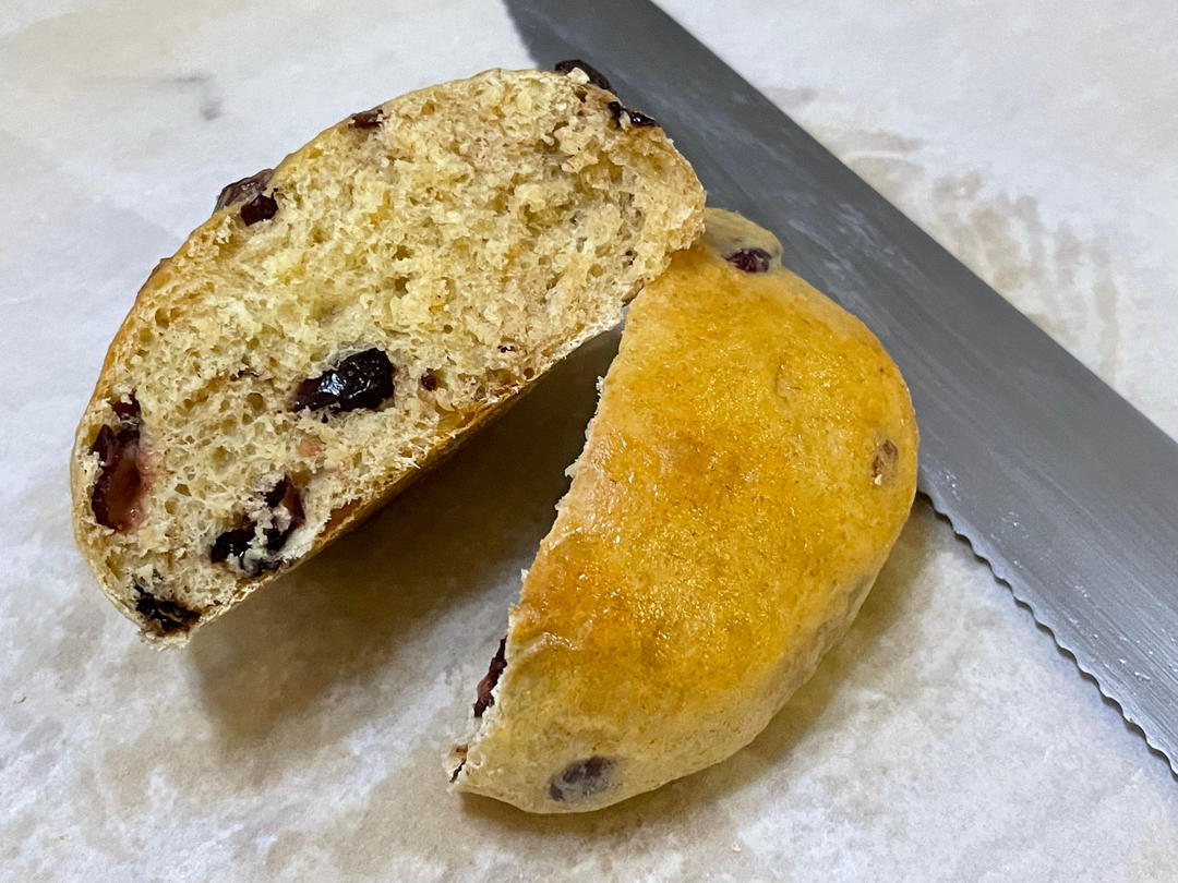 做之前就想过,我最喜欢的一定是橙汁蔓越莓的,果不其然,蔓越莓干用白朗姆酒浸泡了一个小时,把橙皮换成了巧克力豆。