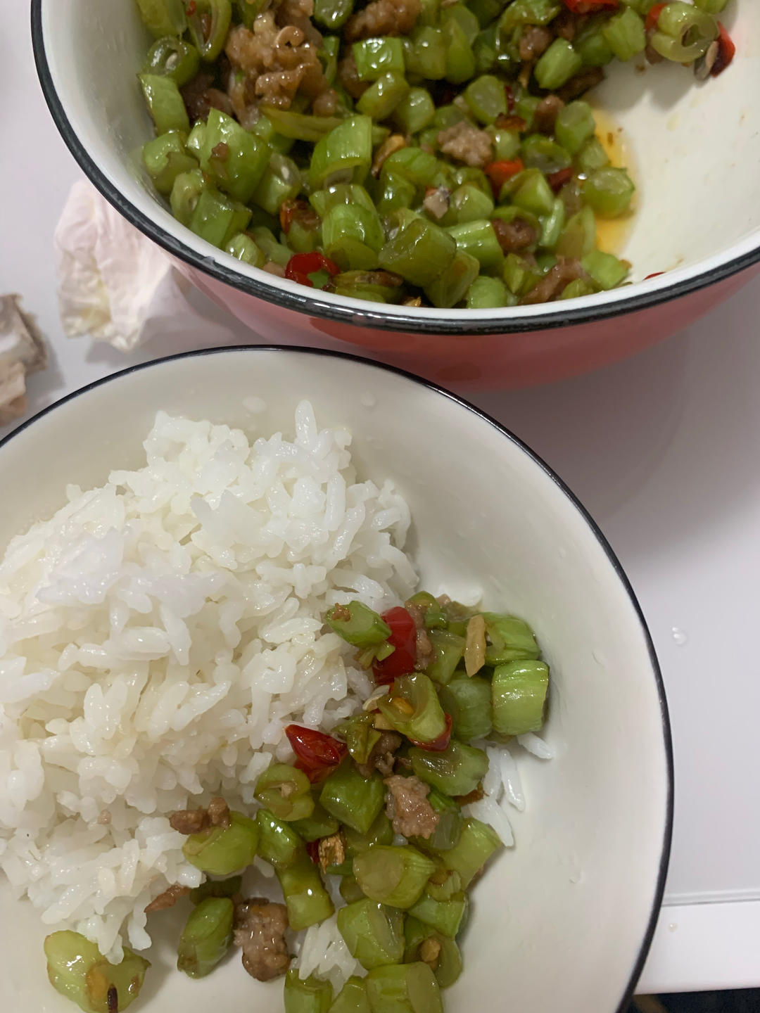 清炒白菜,手撕杏鲍菇,红烧肉,鱼香肉丝