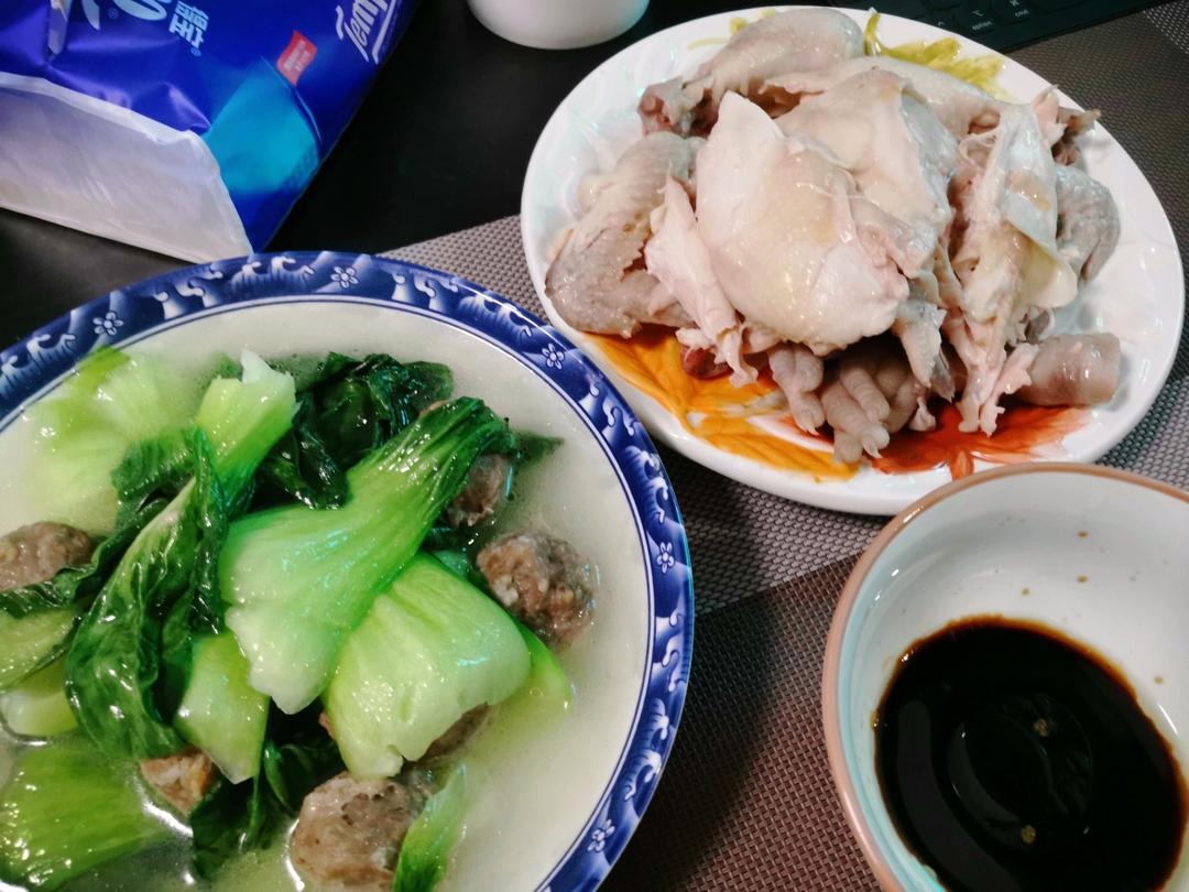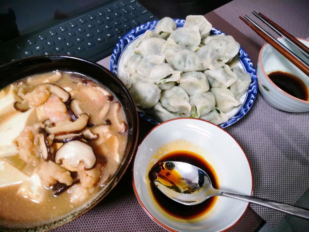韭菜鸡蛋水饺+红烧豆腐虾滑香菇