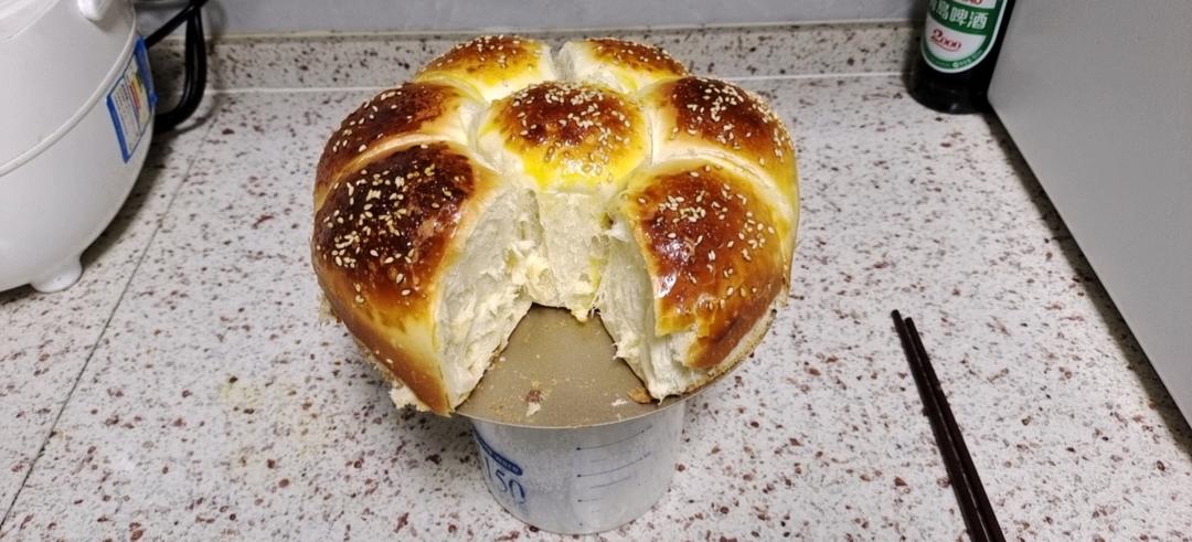 T65+全麦,越揉越粘,面团粘到怀疑人生,虽然喜欢这种口感,但毁烤盘,烤箱呀,空烤冒烟,有股焦味。#早餐•2022年4月...