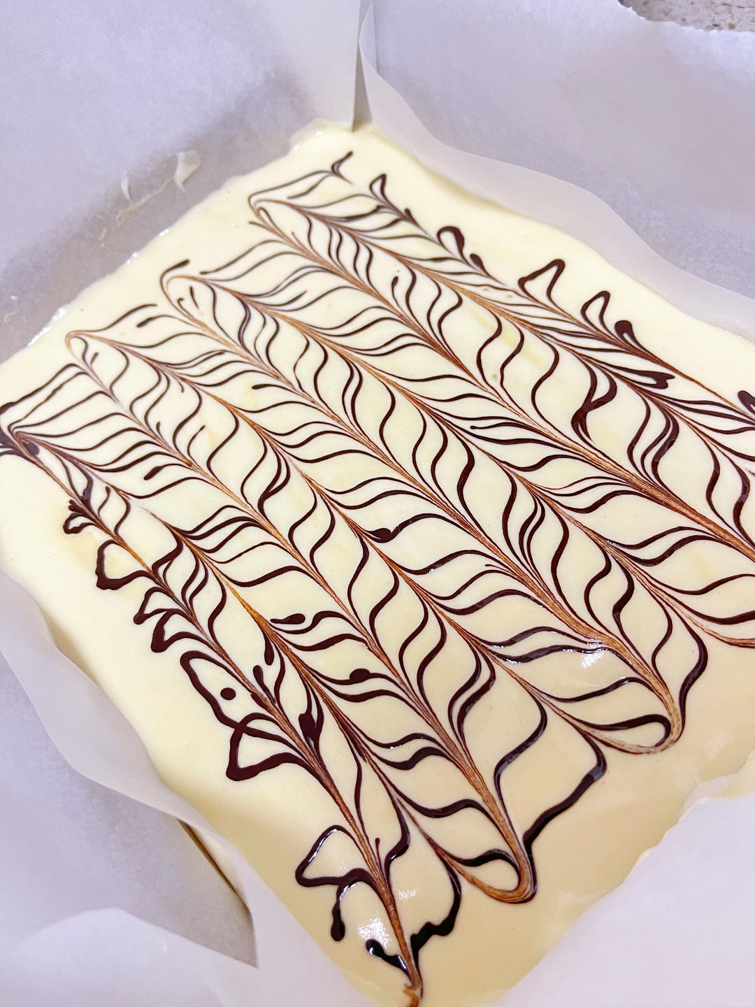 家里只有红茶茶包了、切了点巧克力碎下去,还做了一小块原味的给小朋友,黄油换成椰子油,香得很...