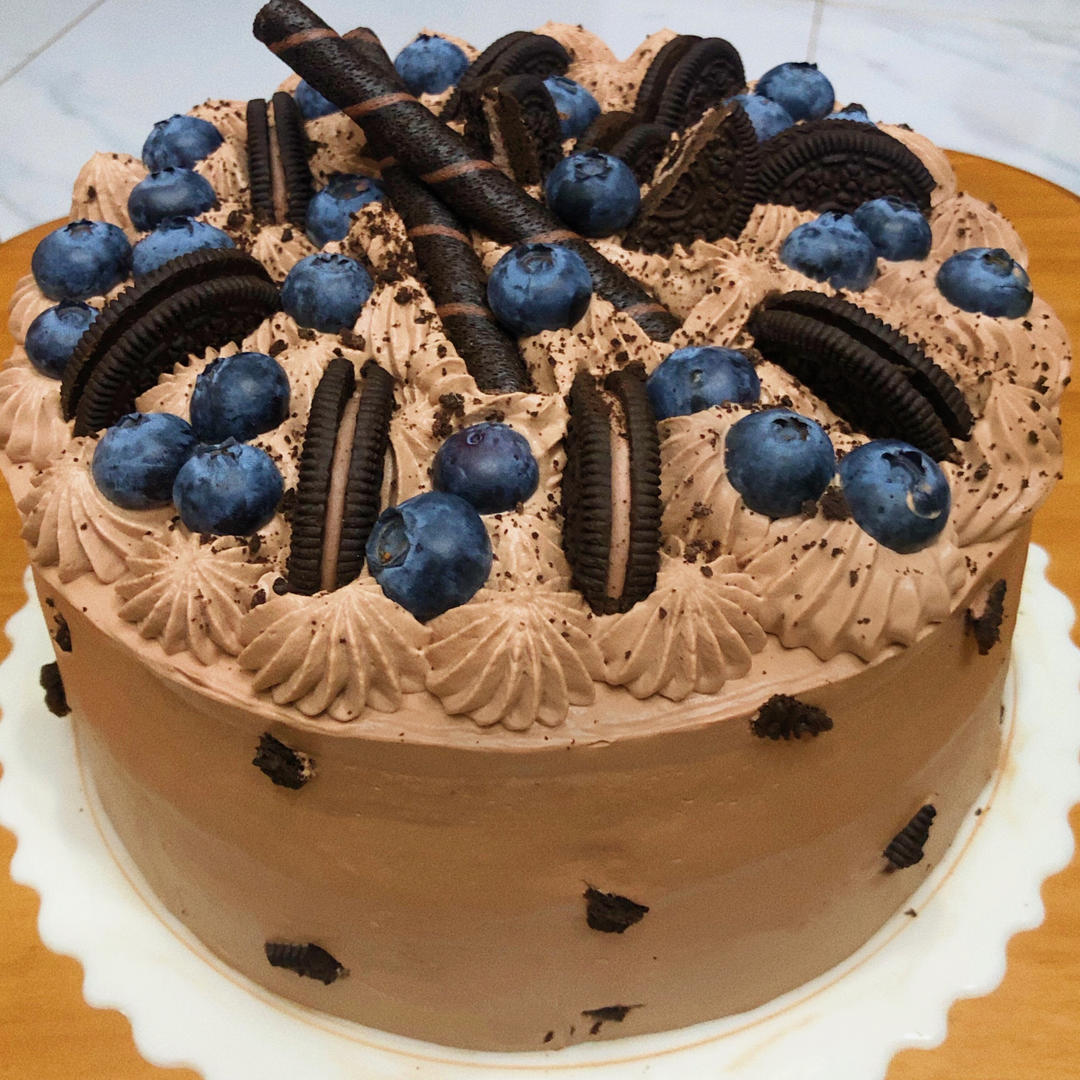 做的第二个奶油蛋糕,抹面还是不到位,有点鼓腰了。。