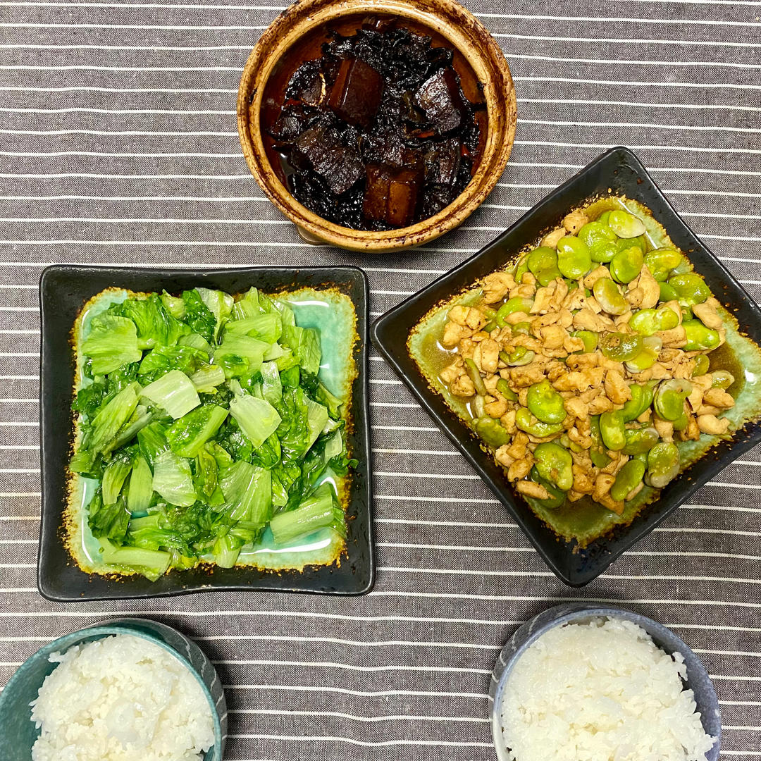 虾仁油麦菜+咸肉胡萝卜饭