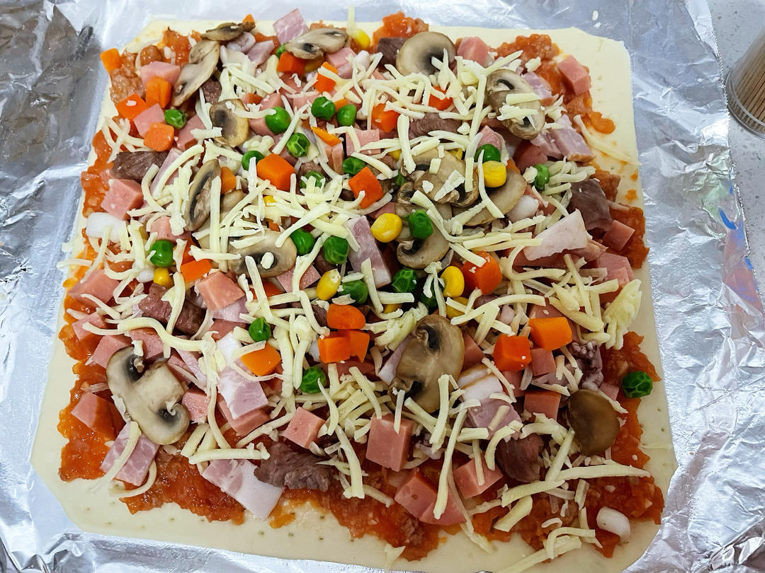 折腾半天做的披萨,味道很好!主要是料足😂味道就好
