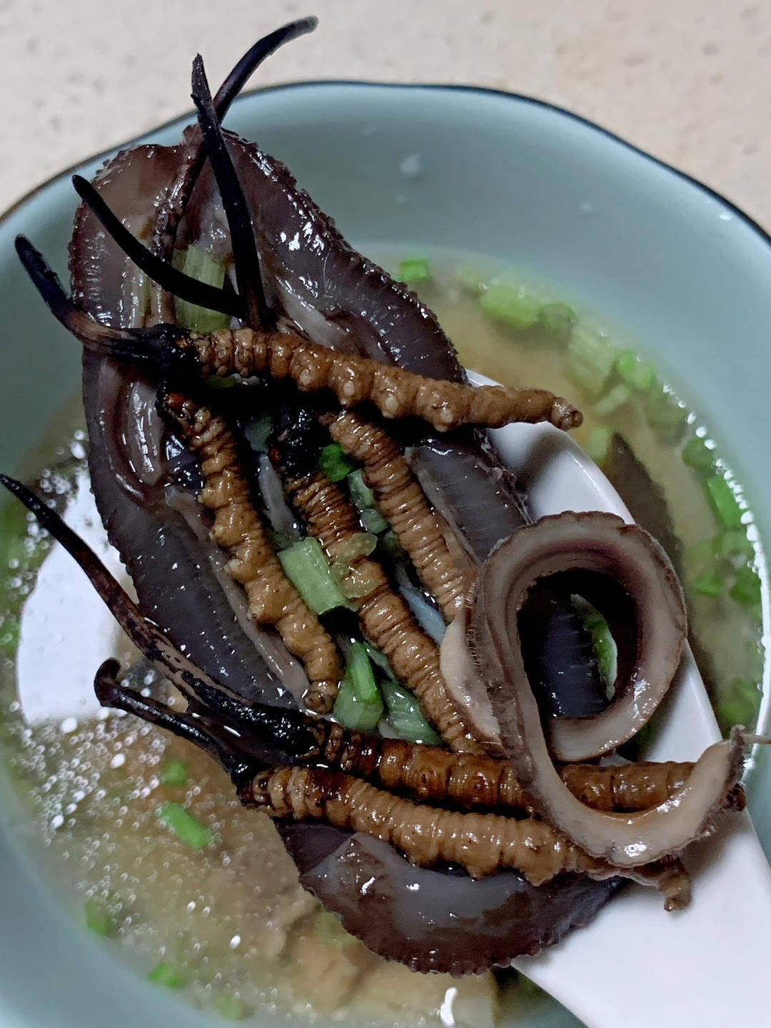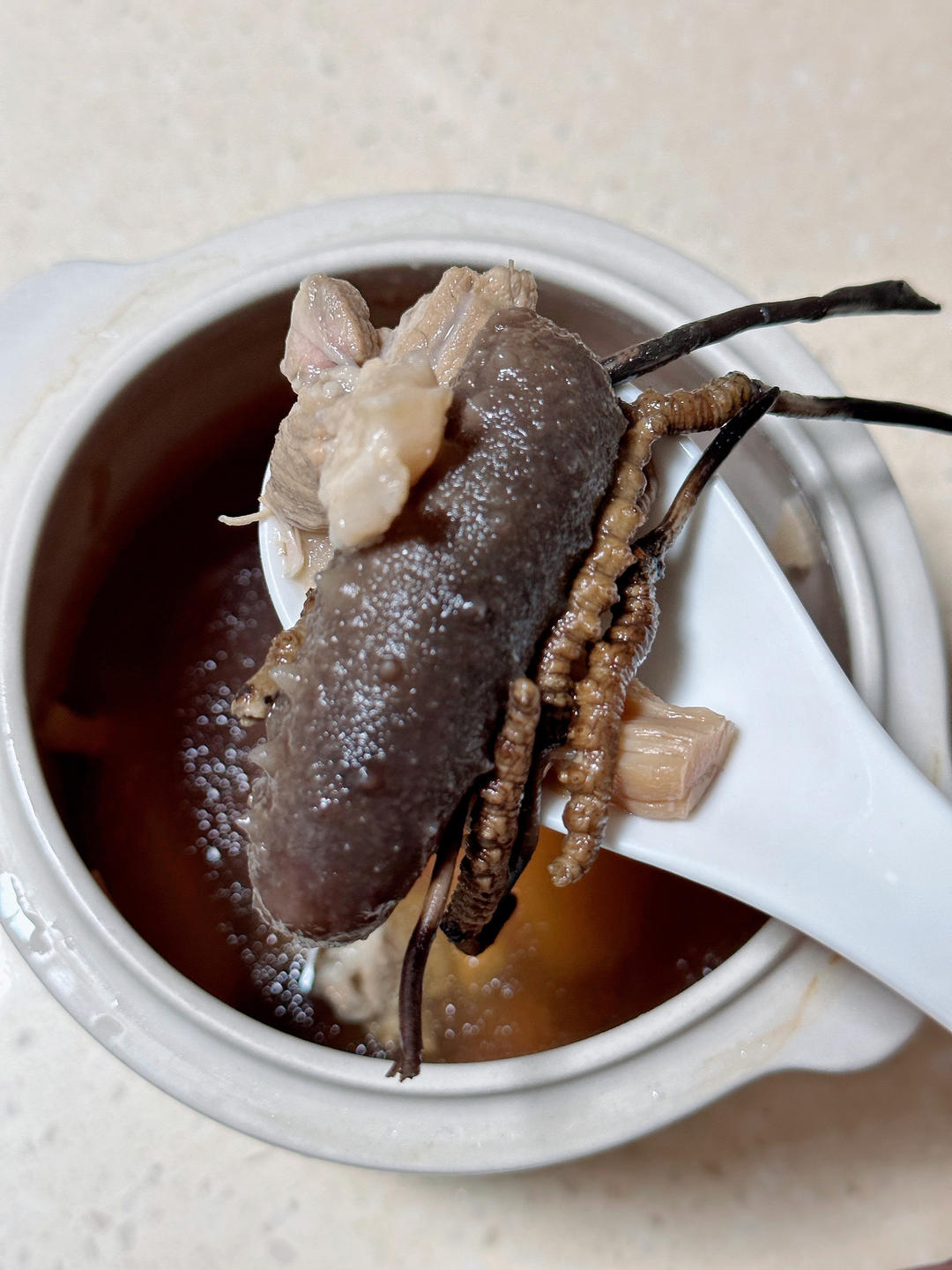 虫草蜘蛛胶海参元贝腱子肉汤——(老公的)