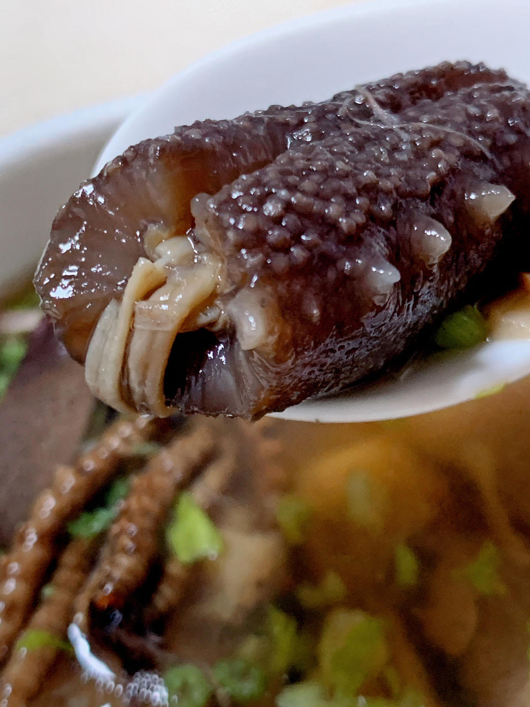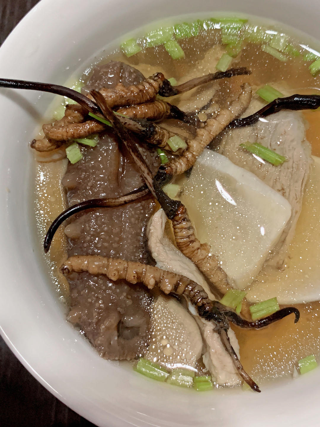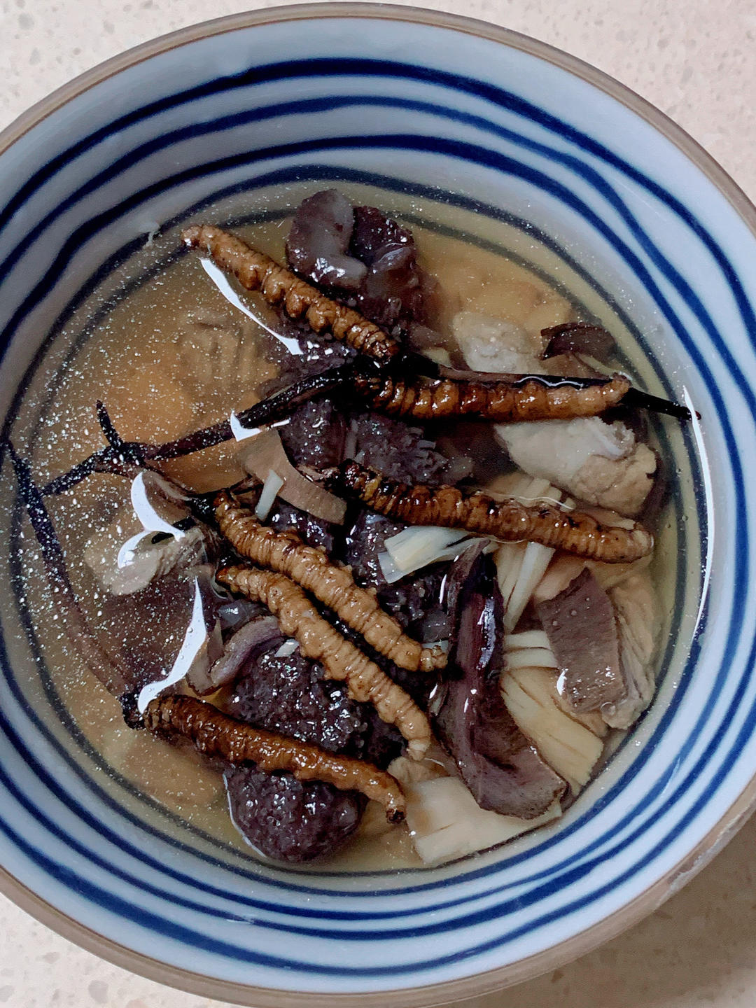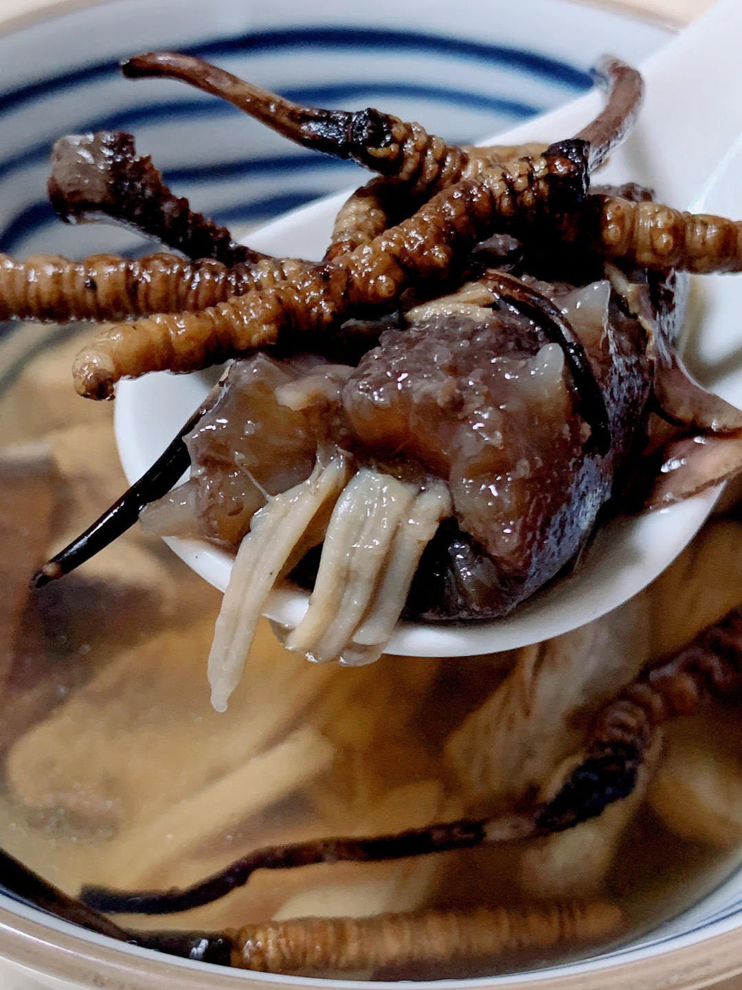 虫草海参鱼胶日本元贝腱子肉汤。
