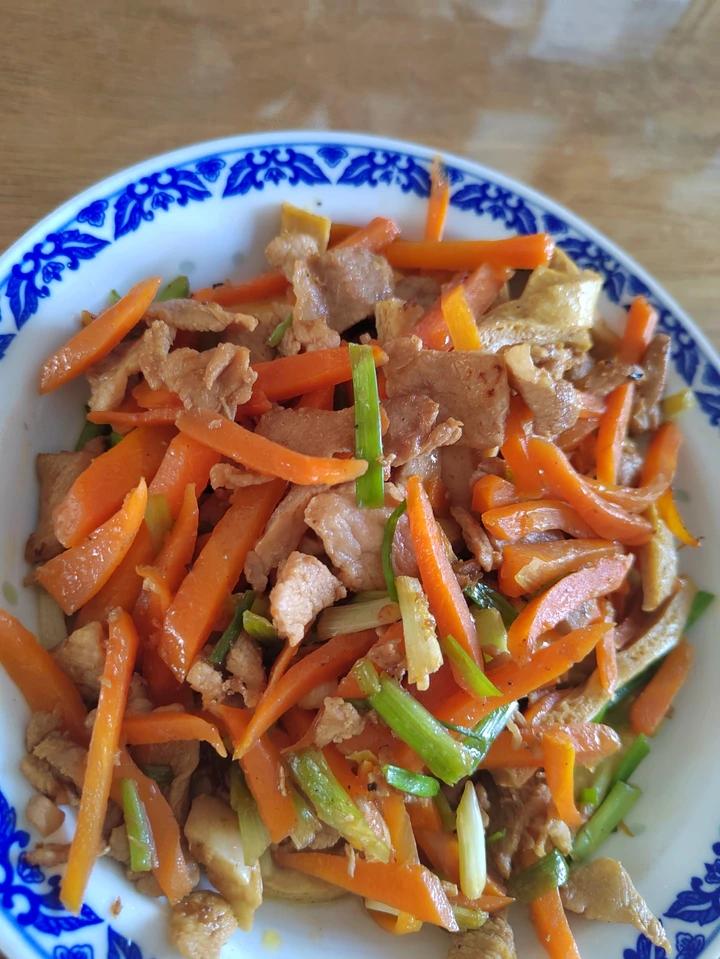 孩子爱吃的晚餐 ,白豆干炒肉炒胡萝卜丝
