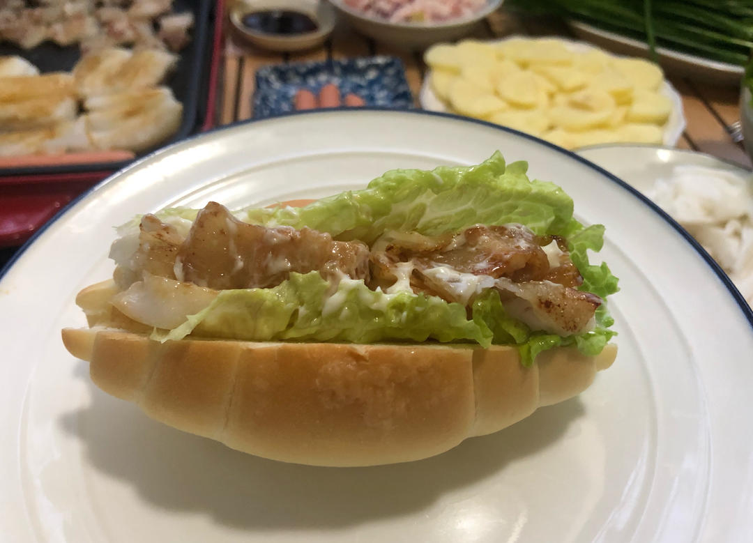 没有芝士片略遗憾,贝贝的抹了蓝莓酱,贝贝妈的是黄芥么籽酱,好吃