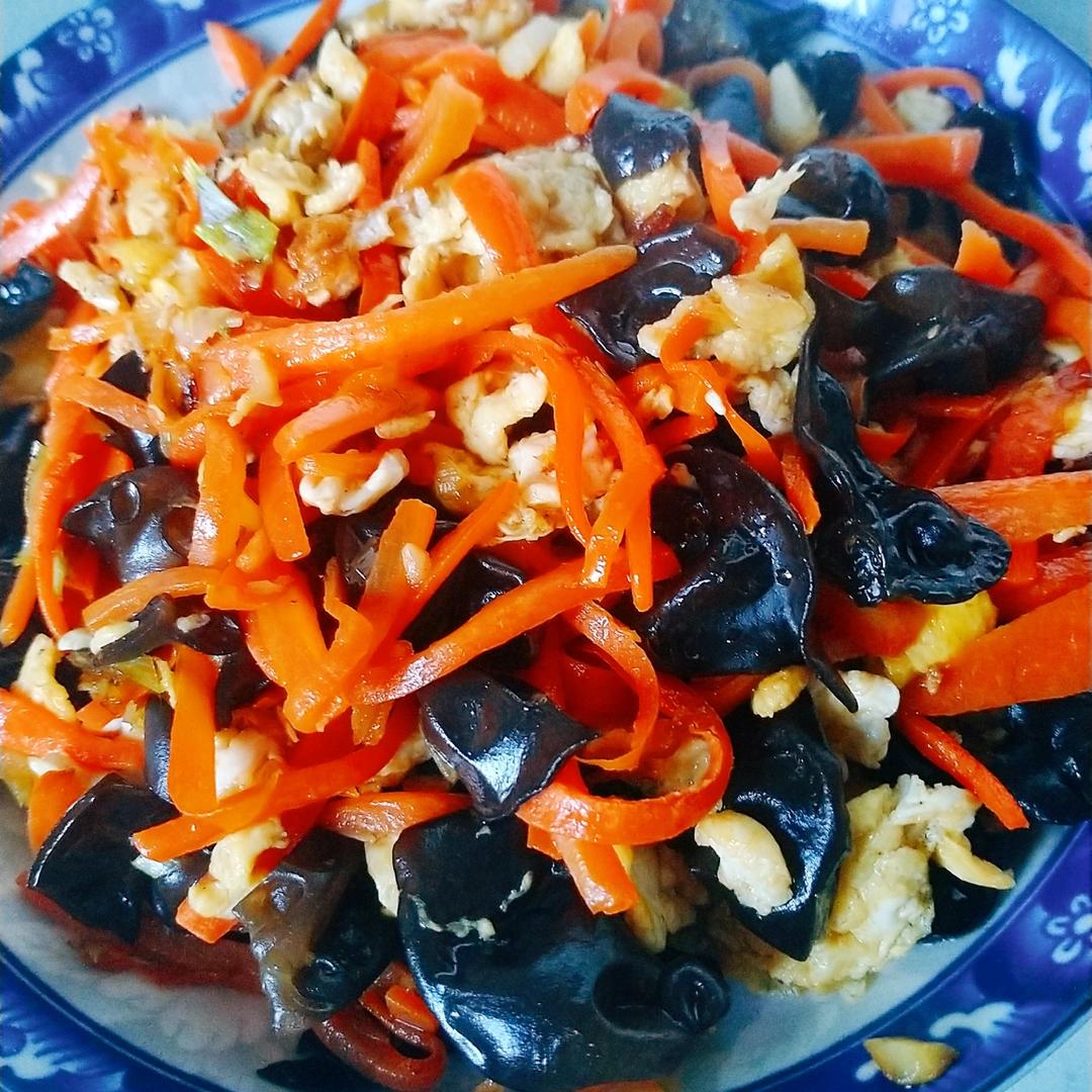 配料:胡萝卜丝,绞瓜丝,鸡蛋,