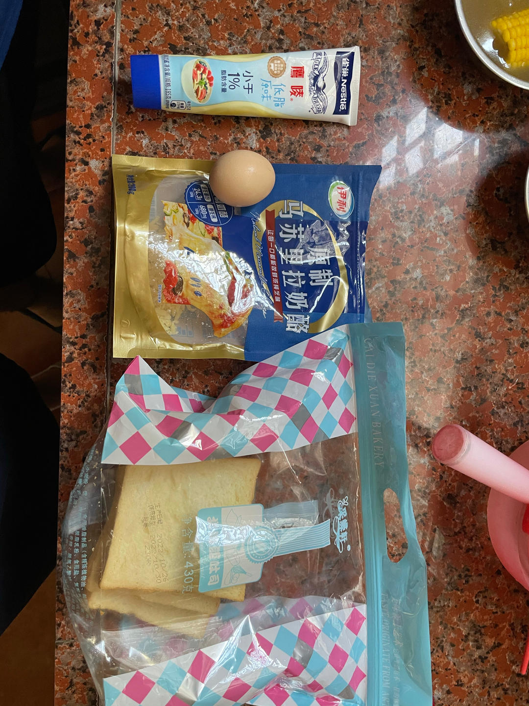 准备方包、鸡蛋、炼奶、马苏里拉芝士