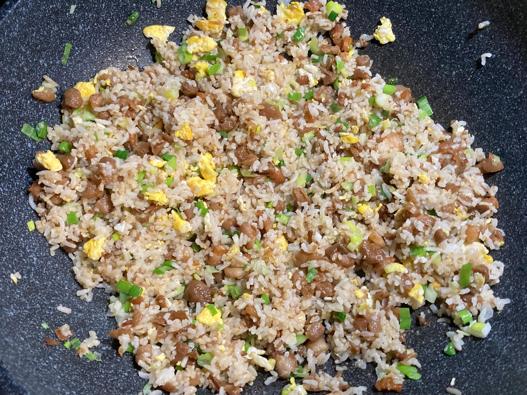 萝卜干粒肥五花肉丁炒饭