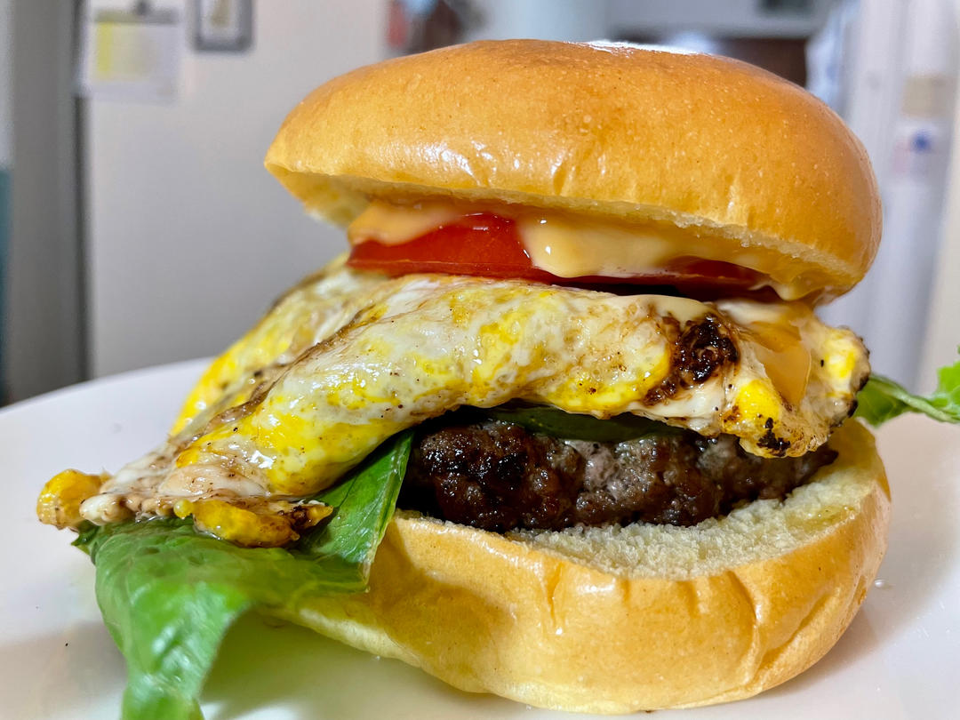 最近大厨老做🍔,的确一组合就很快出炉,😍肉饼好吃,可是这买的面包都……我喜欢瓷实点的