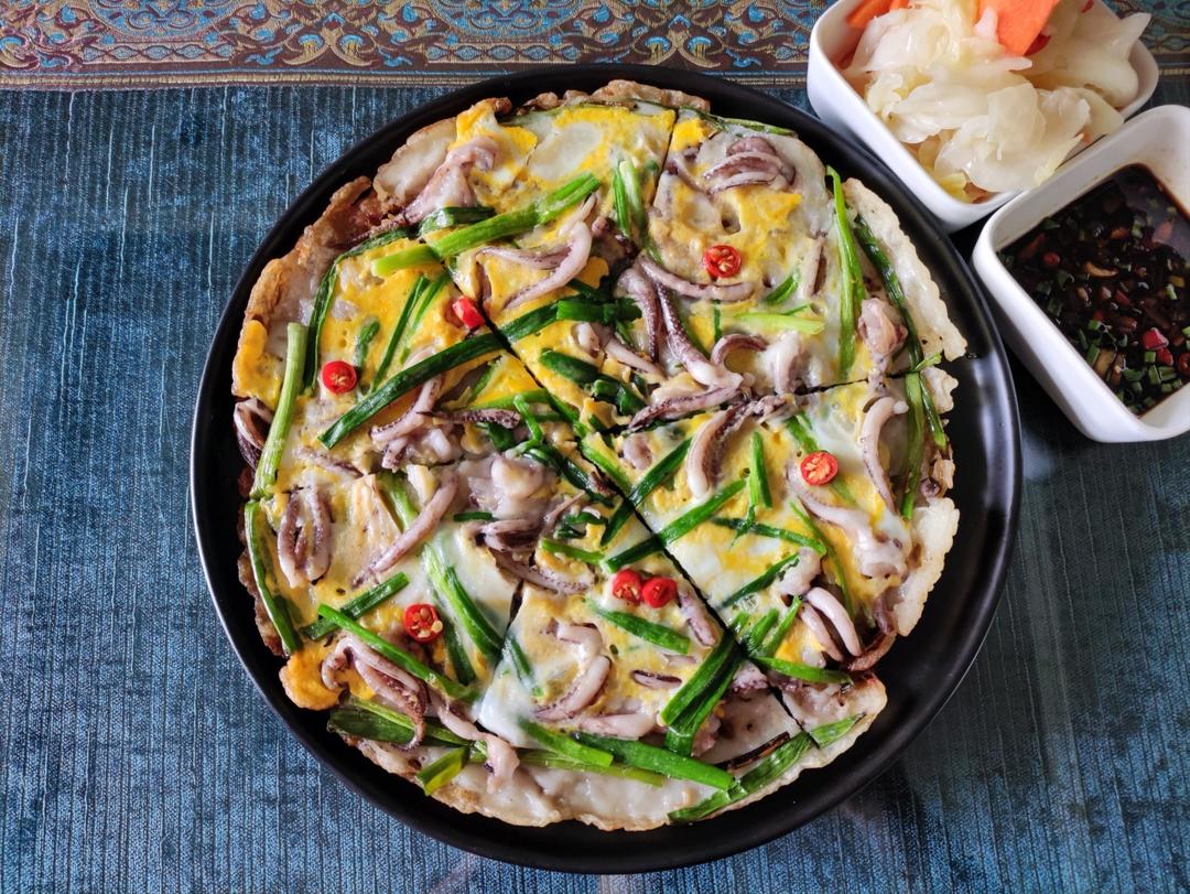 D51。又做了一次海鲜葱饼,这次的饼体更薄一点,更加脆。